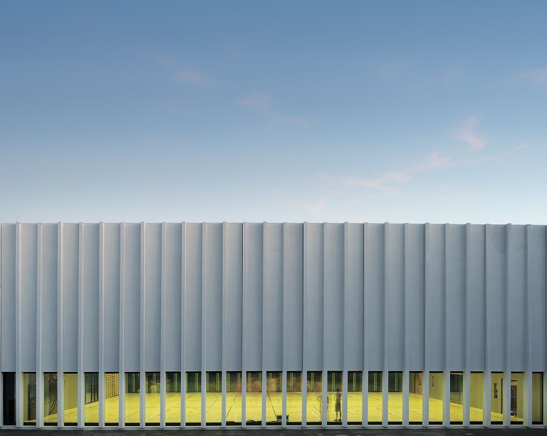 L'implantation et l'organisation du volume principal, sis entre la place d'accueil et la place de la salle de sport, offre une articulation sensible permettant l'organisation des accès et des espaces de transition nécessaires (écoliers, visiteurs du musée, parents, sportifs, ...).