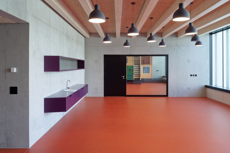 Implantée sur un terrain en faible pente, l'école de la condemine investit l'ensemble d'un ilôt urbain, fruit de la densification autour du noyau historique de la ville de Bulle, l'organisation de l'école s'appuie sur un réseau de parcours piétons ancré au tissu urbain environnant.